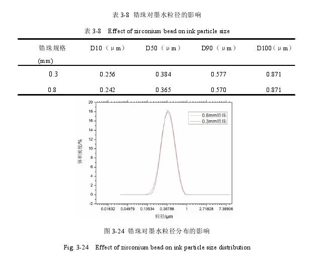 Figures 3-25 and 3-26 indicate that, under the same conditions, ceramic inks prepared by grinding to D100=0.871μm with 0.3mm and 0.8mm zirconia beads exhibit similar viscosity and surface tension values.